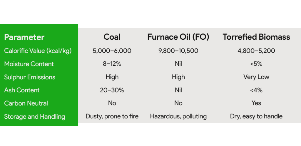 - Better Handling: Unlike raw biomass, torrefied fuel is dry, non-sticky, and easier to transport and store.